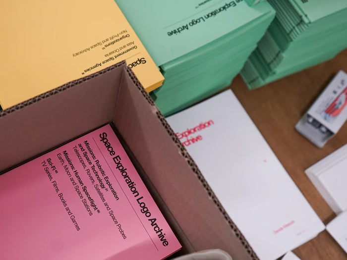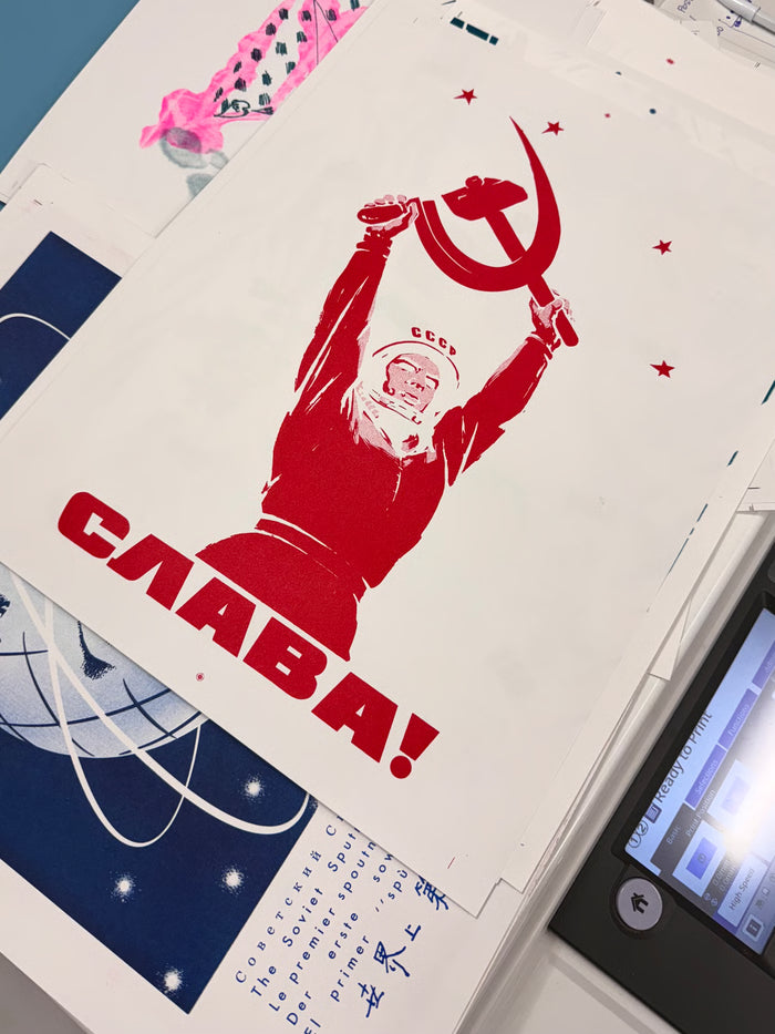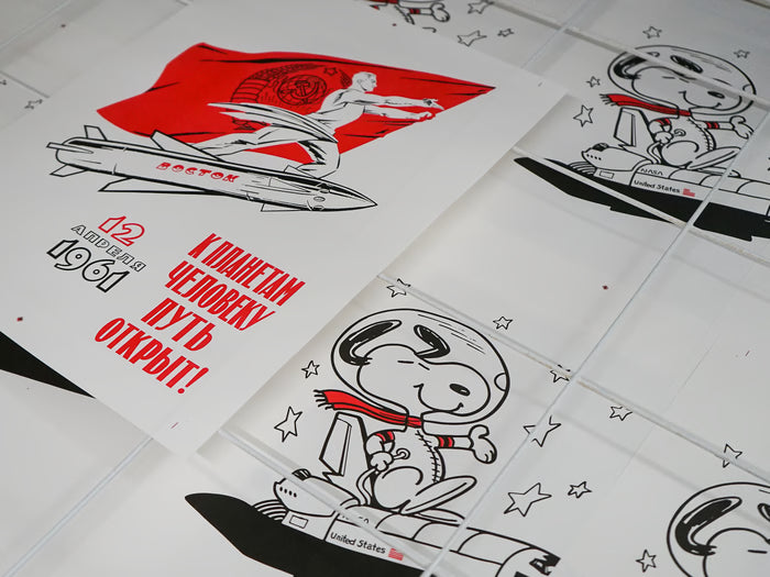 S.E.L.A. - “CPCP - 12 IV 1961” is part of a series of prints exploring space race propaganda, released alongside S.E.L.A – Space Exploration Logo Archive, a book documenting logos from space exploration from the 1940s to today.